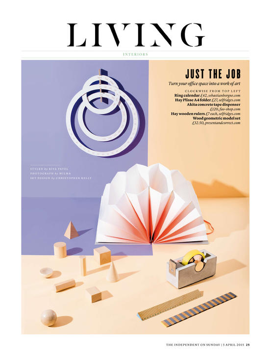 My role working with the Independent on Sunday magazine and Wilma photography is to create innovative and attention grabbing sets for a series of products that appeared in the magazines weekly interiors feature.