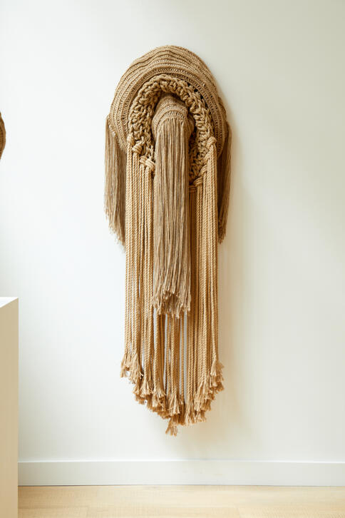 Working with crochet, macramé, weaving, and natural or repurposed materials, Kelly constructs form that oscillate between containment and release. The works open, unravel, and spill outward, holding vulnerability alongside quiet insistence. Emotional intensity is carried through material tension rather than visual excess, creating an environment that feels at once exposed and composed, intimate and assured.