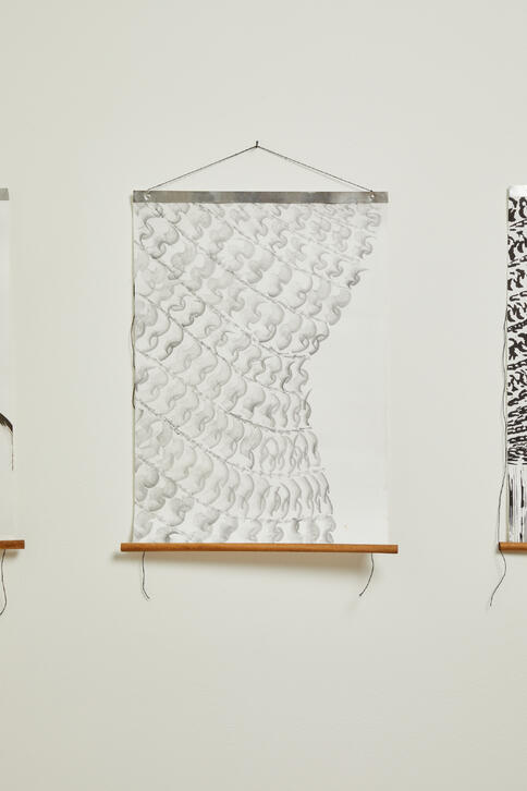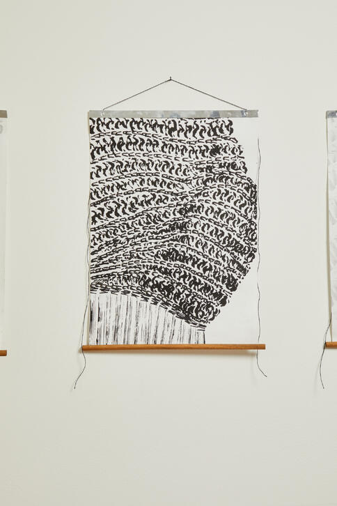 Rooted in lived experience of Autism and Attention Deficit Disorder, Evisceration examines the gradual loosening and shedding of masking. Masking is understood here as the often-unconscious restructuring of self-required to navigate neurotypical environments. Through textile-based sculpture, installation, and furniture scale works, Kelly renders these internal negotiations visible, tactile, and spatially present.